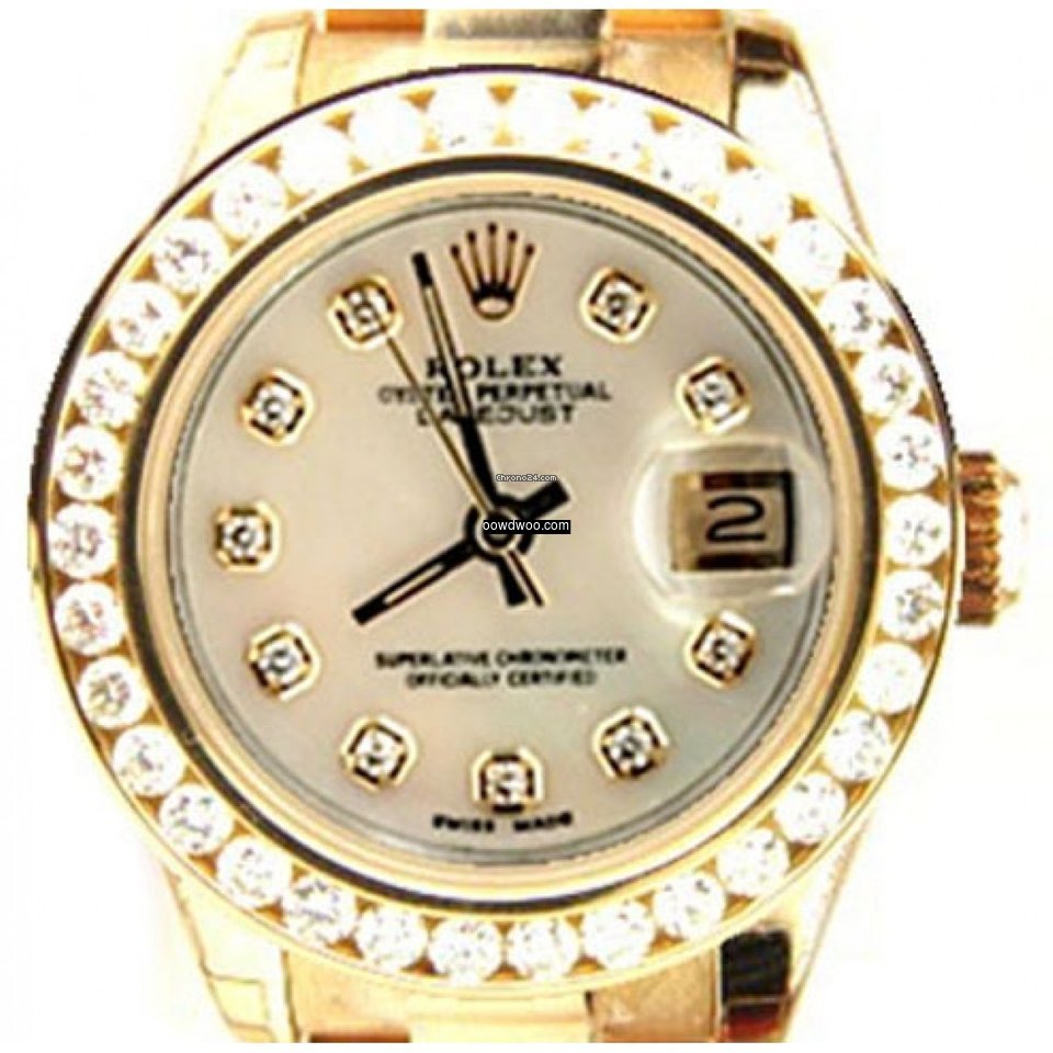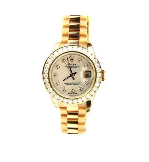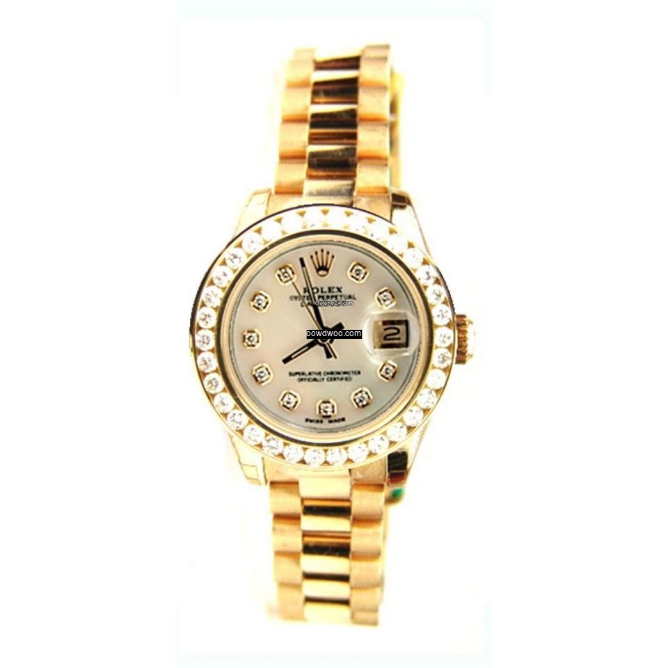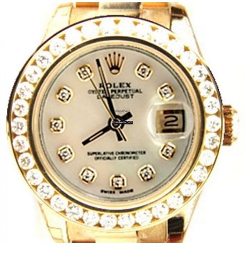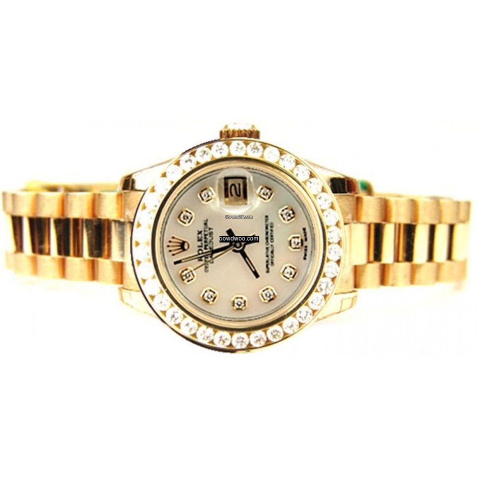 Rolex Lady's President Unused New Style Heavy Band Model 179178 In Box with Booklets, with Custom Added 1.5ct Channel Diamond Bezel and MOP Diamond Dial - AMAZING