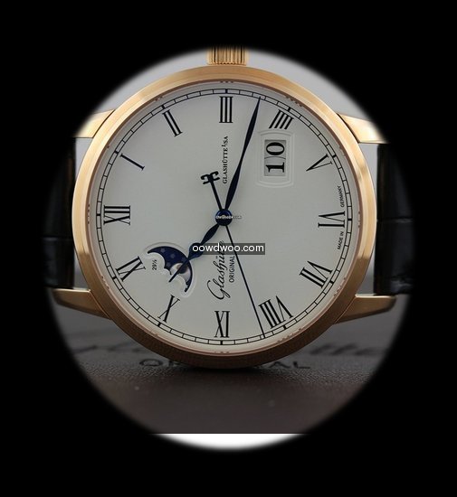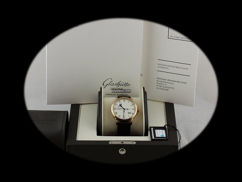 Glashütte Original Senator Panorama Date Moon Phase ad: $14,800 Glashütte Original Senator Panorama Date Moonphase - 100-04-32... Ref. No. 100-04-32-15-04; Pink gold; Automatic; Condition 0 (unworn); With box; With papers; Lo