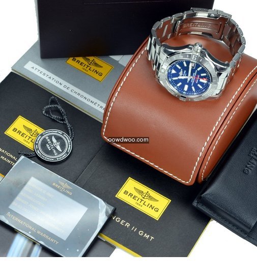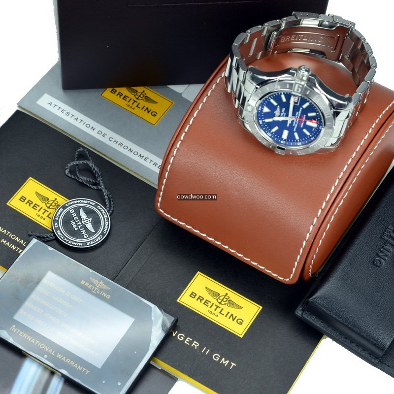 A complete set, this watch is supplied with the original boxes, brown Breitling presentation pouch, chronometer certificate, warranty booklet, instruction manual and new style electronic warranty card and swing tag.