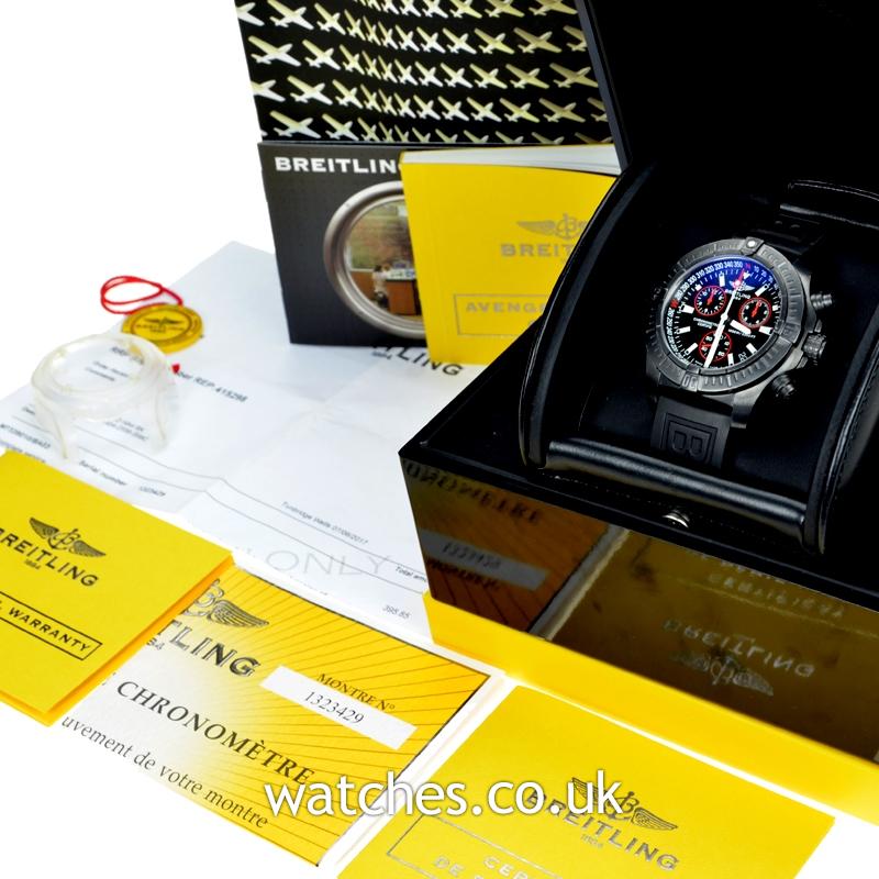 This Breitling Avenger Seawolf Blacksteel comes with full box and warranty papers, chronometer certificate, instruction book and Breitling certificate of limited issue.