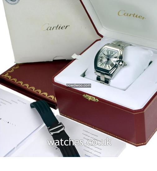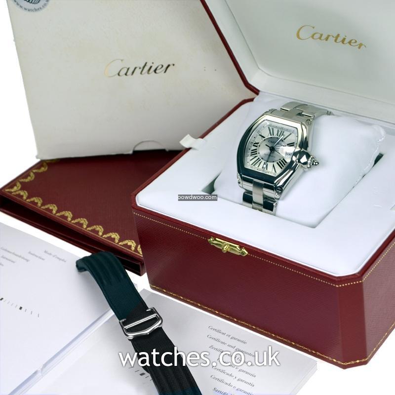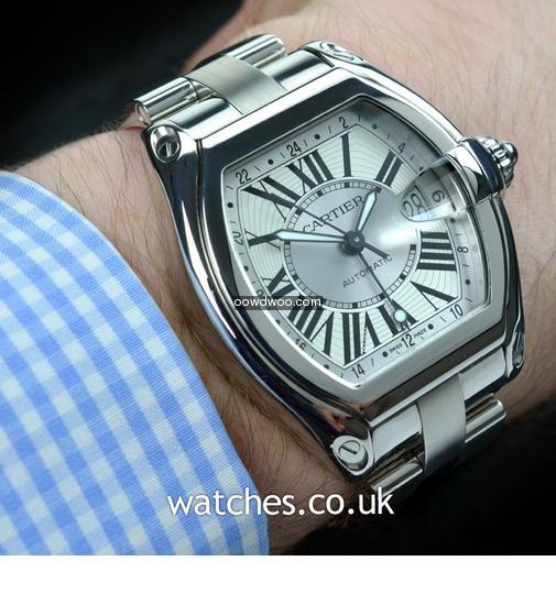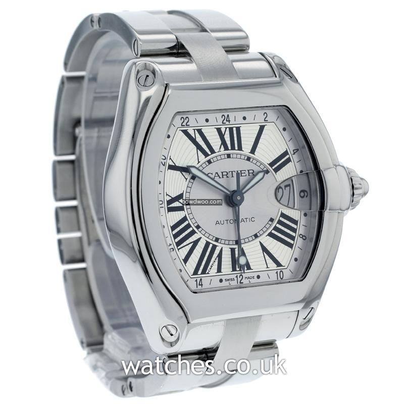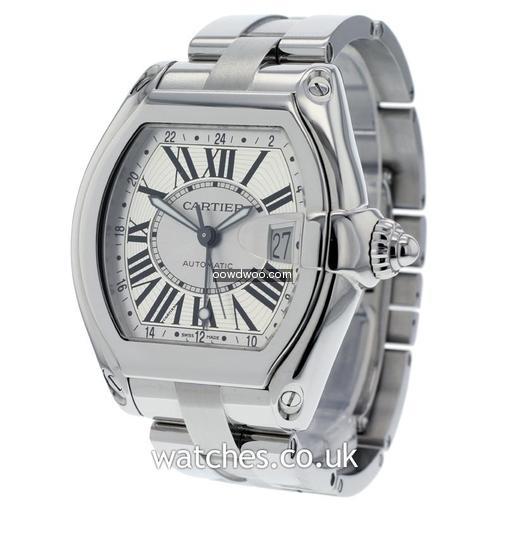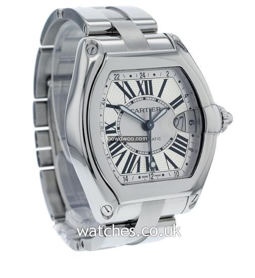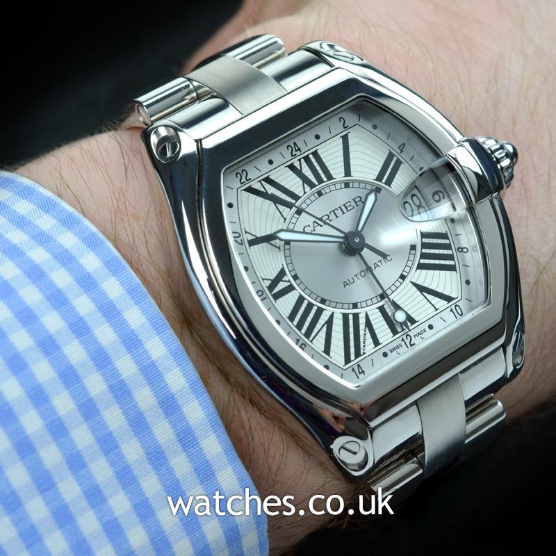 Refined yet masculine, with all the art deco touches you might expect from Cartier, this Roadster GMT features a bright silver roman dial with date, with a polished steel case and bezel. A complete set with all original boxes, instructions, warranty certificate and additional black fabric strap with steel Cartier deployment buckle.