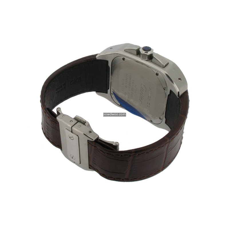 Originally purchased directly through a recognised Cartier retailer based in St. Helier, Jersey in February 2009. Presented on a brown crocodile leather strap with a Cartier triple-folding clasp.