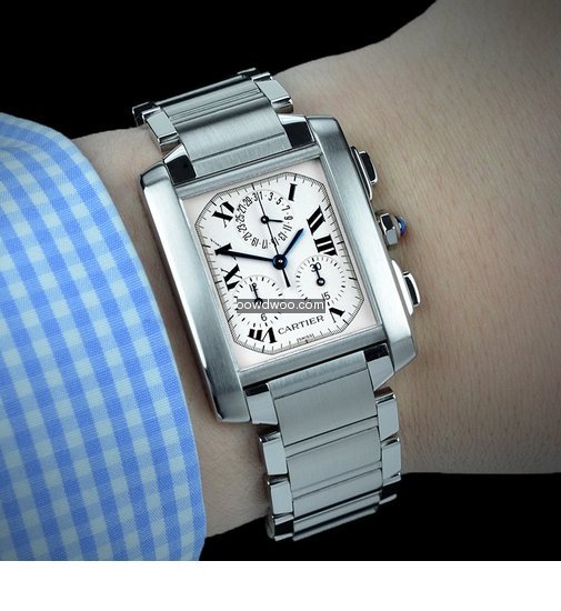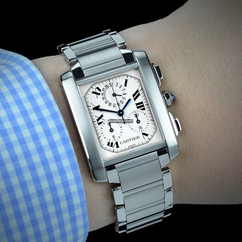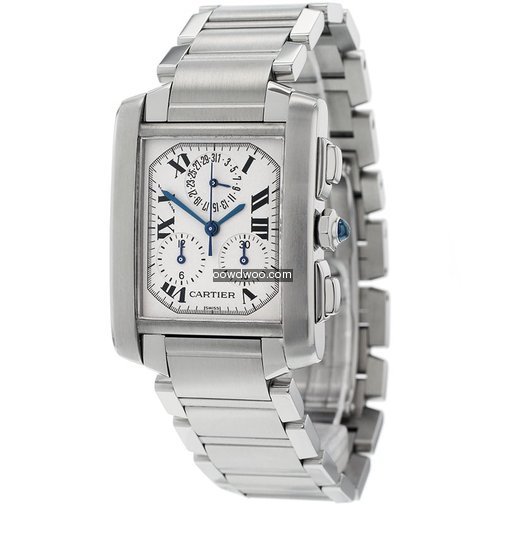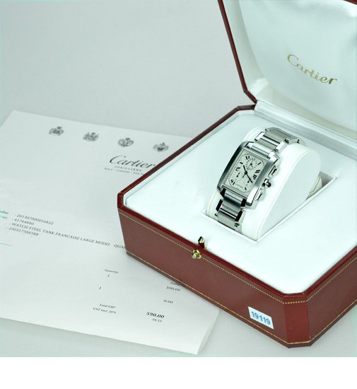 This Quartz timepiece has been serviced by Cartier UK in April 2017 and is supplied with the service papers and is covered ny the guarantee until April 2018. Presented on a brushed and polished stainless steel bracelet, this watch has a chronograph function and a Quartz Chronoflex movement.