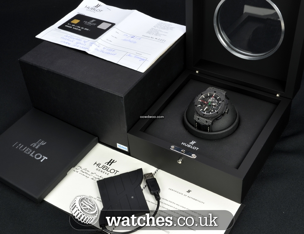 Never worn, this stunning Limited Edition Big Bang Scuderia Rodriguez is one of only 125 units made as a tribute to the former Mexican Scuderia Ferrari pilot Rodriguez.The watch is supplied with the original Hublot boxes, Hublot certificate of authenticity, warranty card and USB card reader.