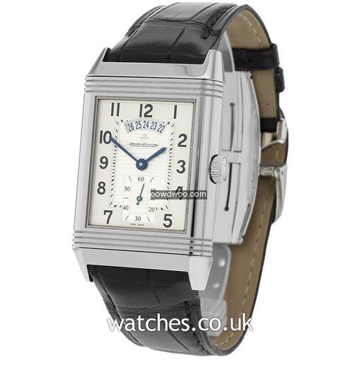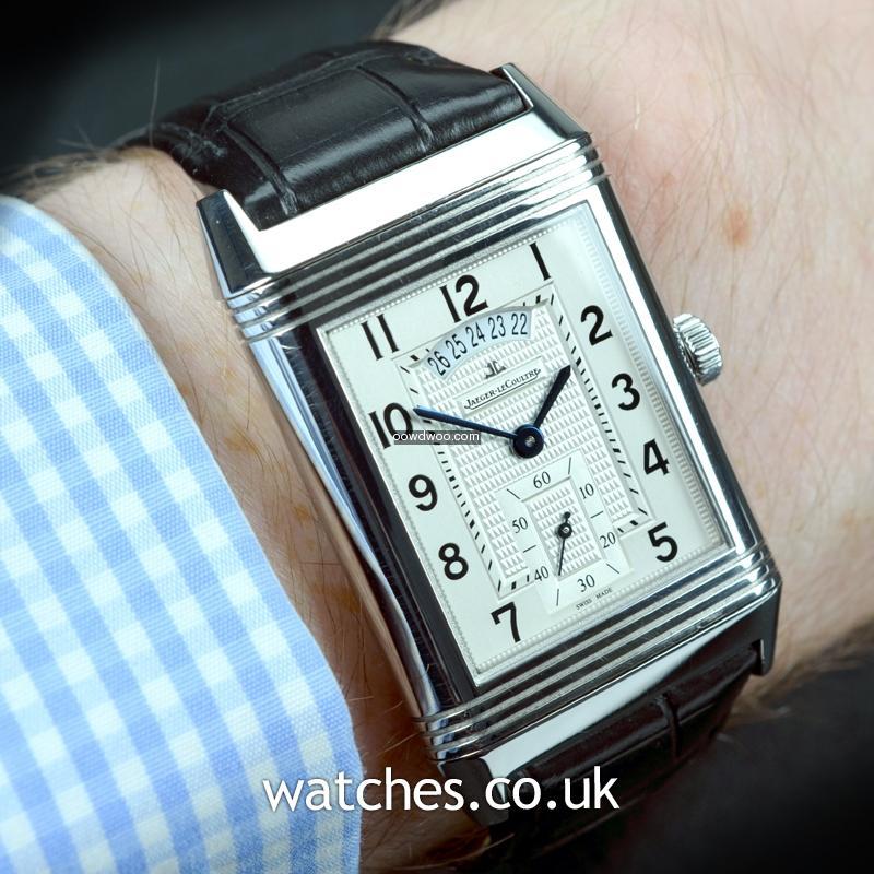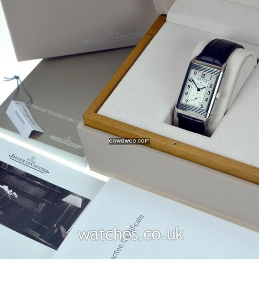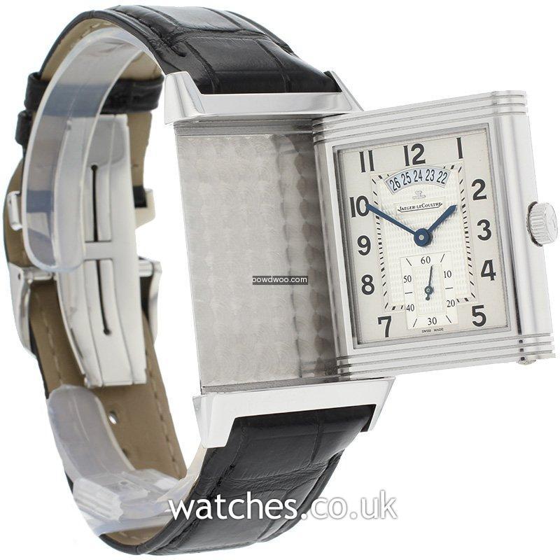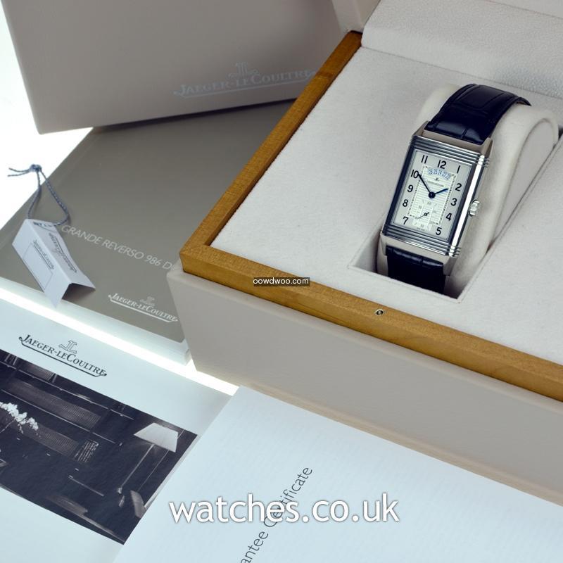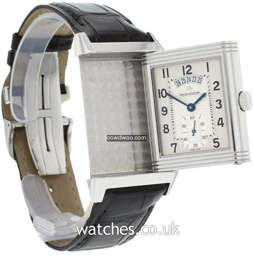A unique, legendary watch in a larger version featuring two time zones on two back-to-back dials driven by a single movement. Two watches in one, one single movement. Useful functions are a 2nd time zone and 24-hour indication. In mint condition this Grande Reverso Duodate is supplied with the original boxes, instruction manual and guarantee certificate.