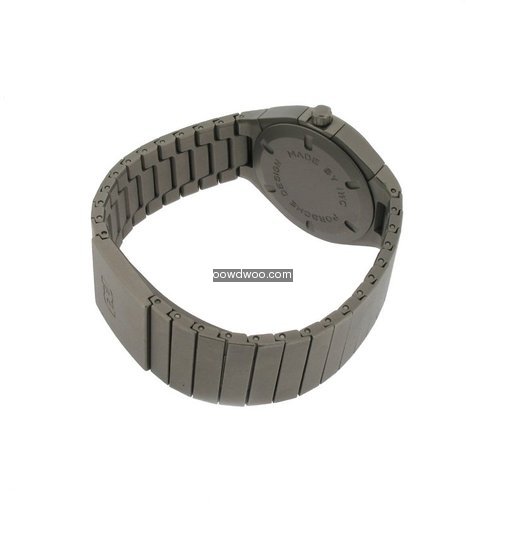 With a durable titanium case, bracelet and crown this timepiece features a black dial, with three sub-dials and a date window. The chronograph pushers are discreetly recessed into the case sides.