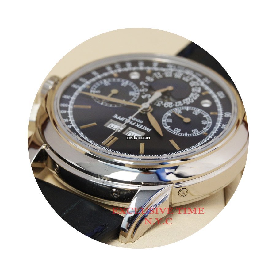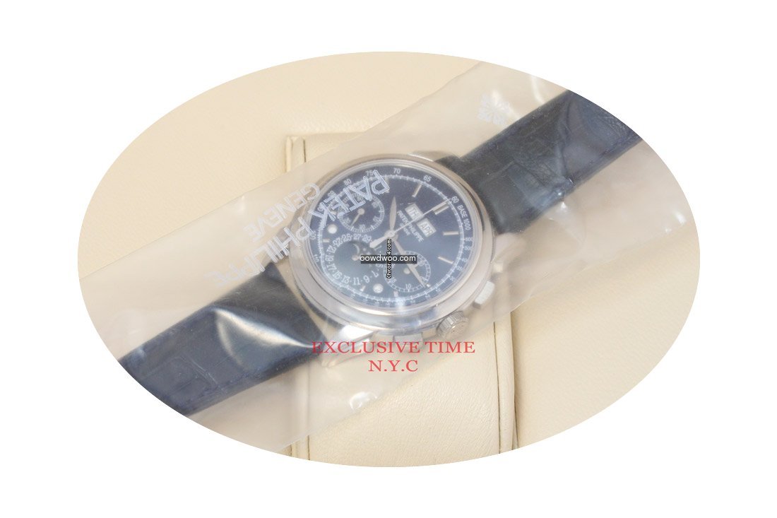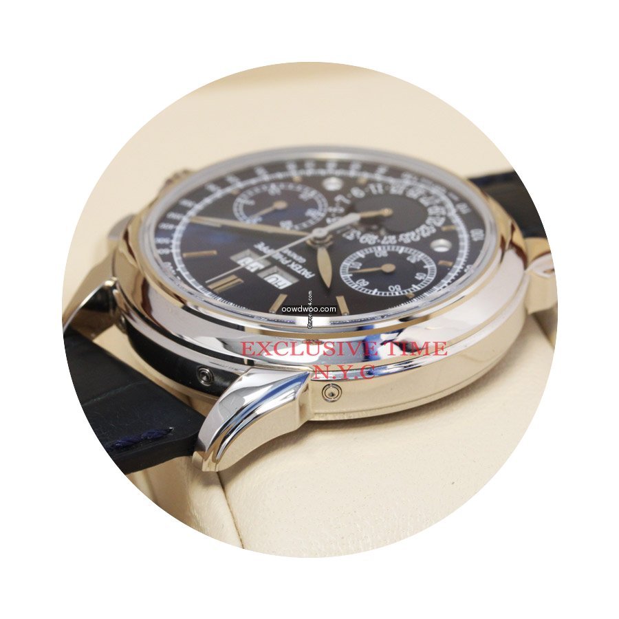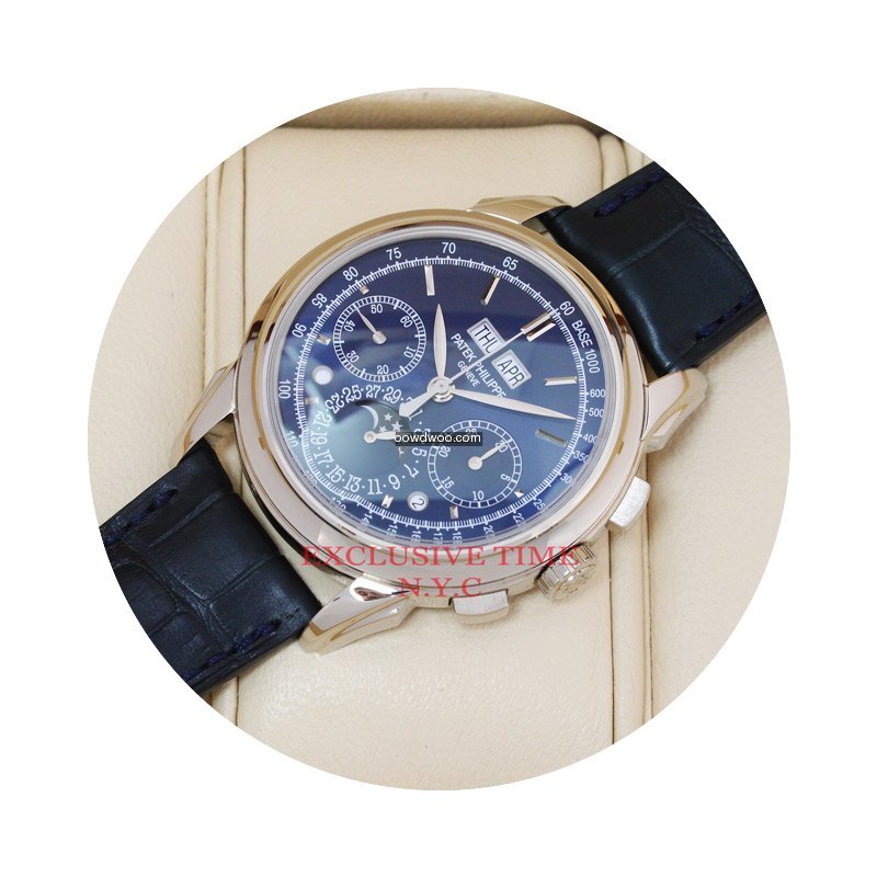 Patek Philippe Perpetual Calendar Chronograph ad: $129,895 Patek Philippe White Gold Grand Complications Blue Dial 5270G-014 Ref. No. 5270G-014; White gold; Manual winding; Condition 0 (unworn); With box; With papers; Lo