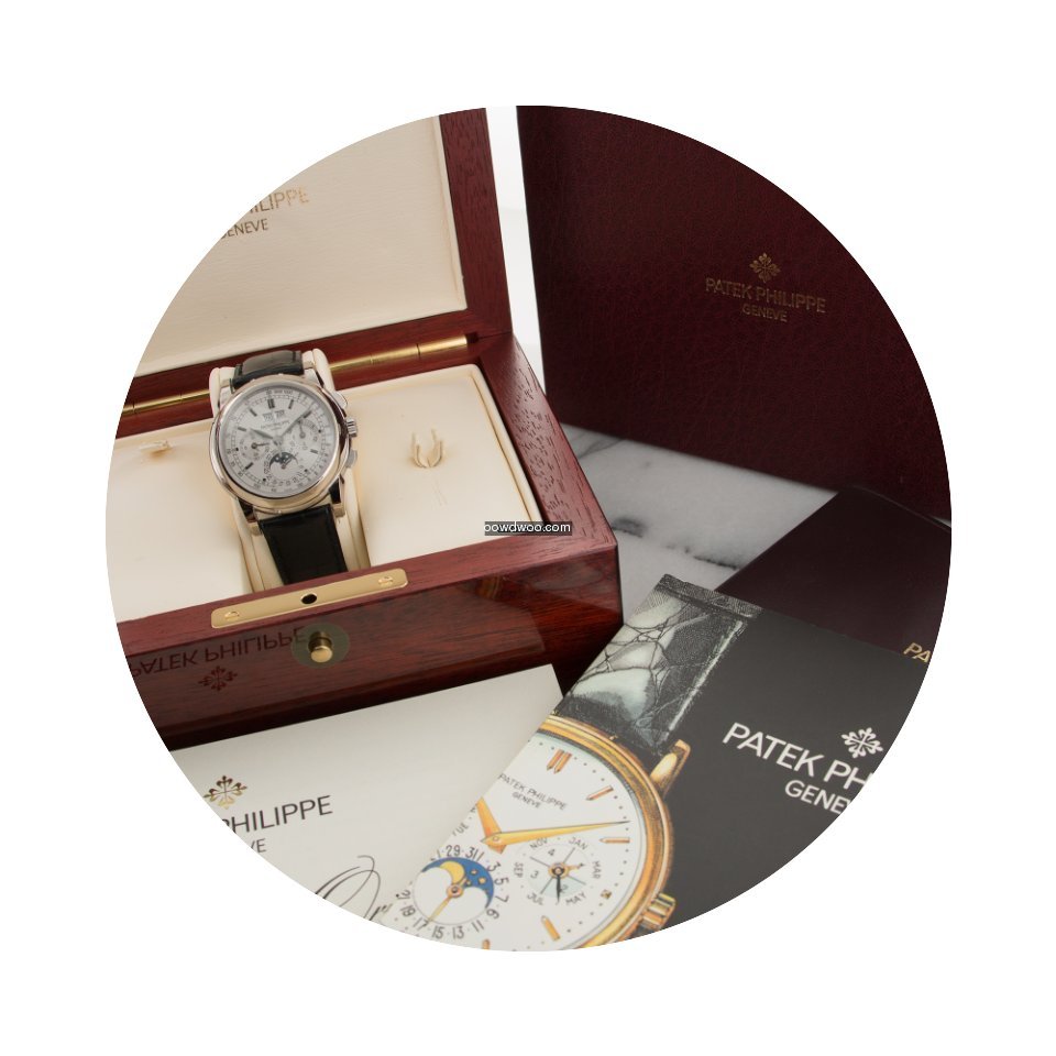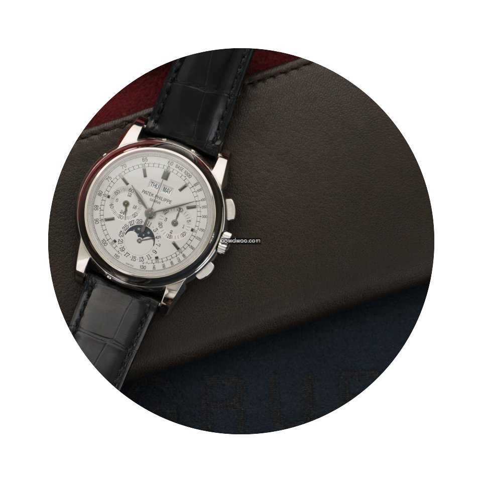 Patek Philippe Perpetual Calendar Chronograph ad: $145,000 Patek Philippe White Gold Perpetual Calendar Chrono Watch Ref.... Ref. No. 5970G; White gold; Manual winding; Year 2005; With box; With papers; Location: United