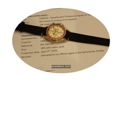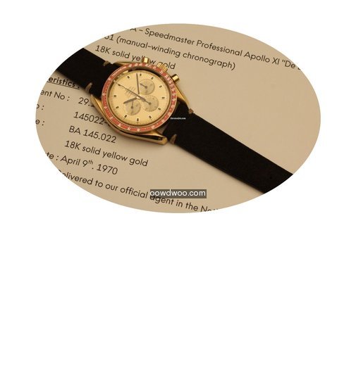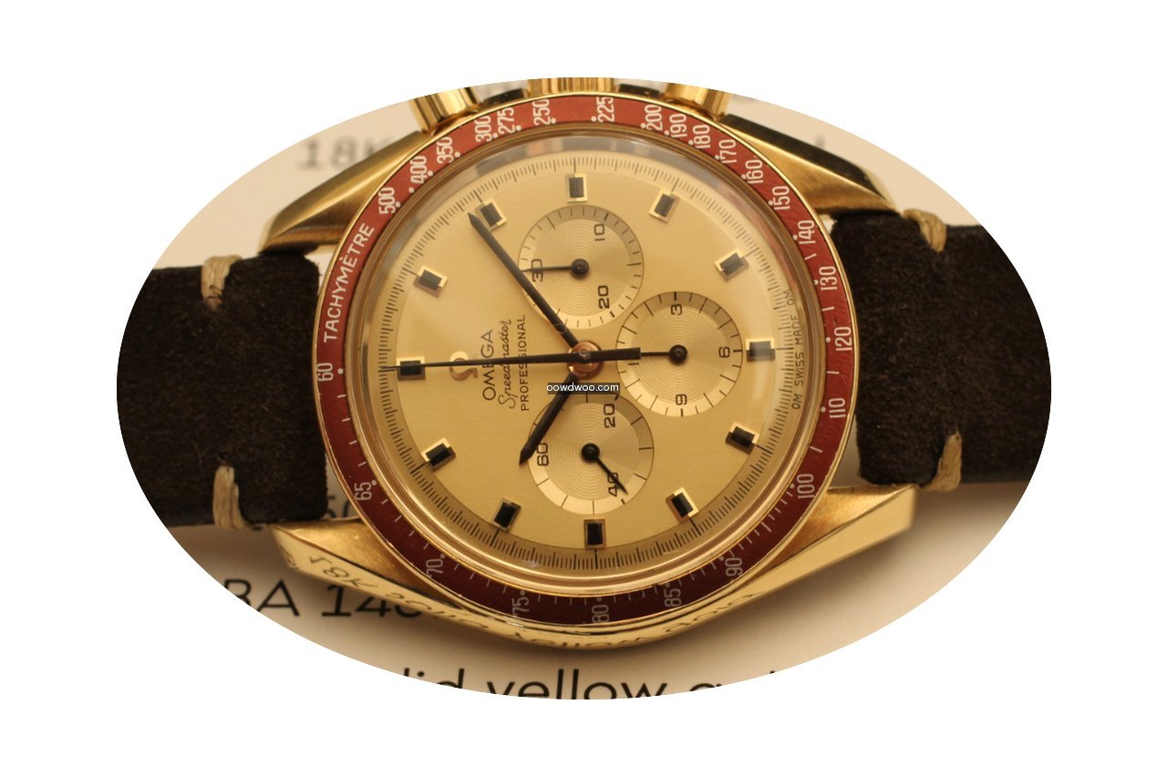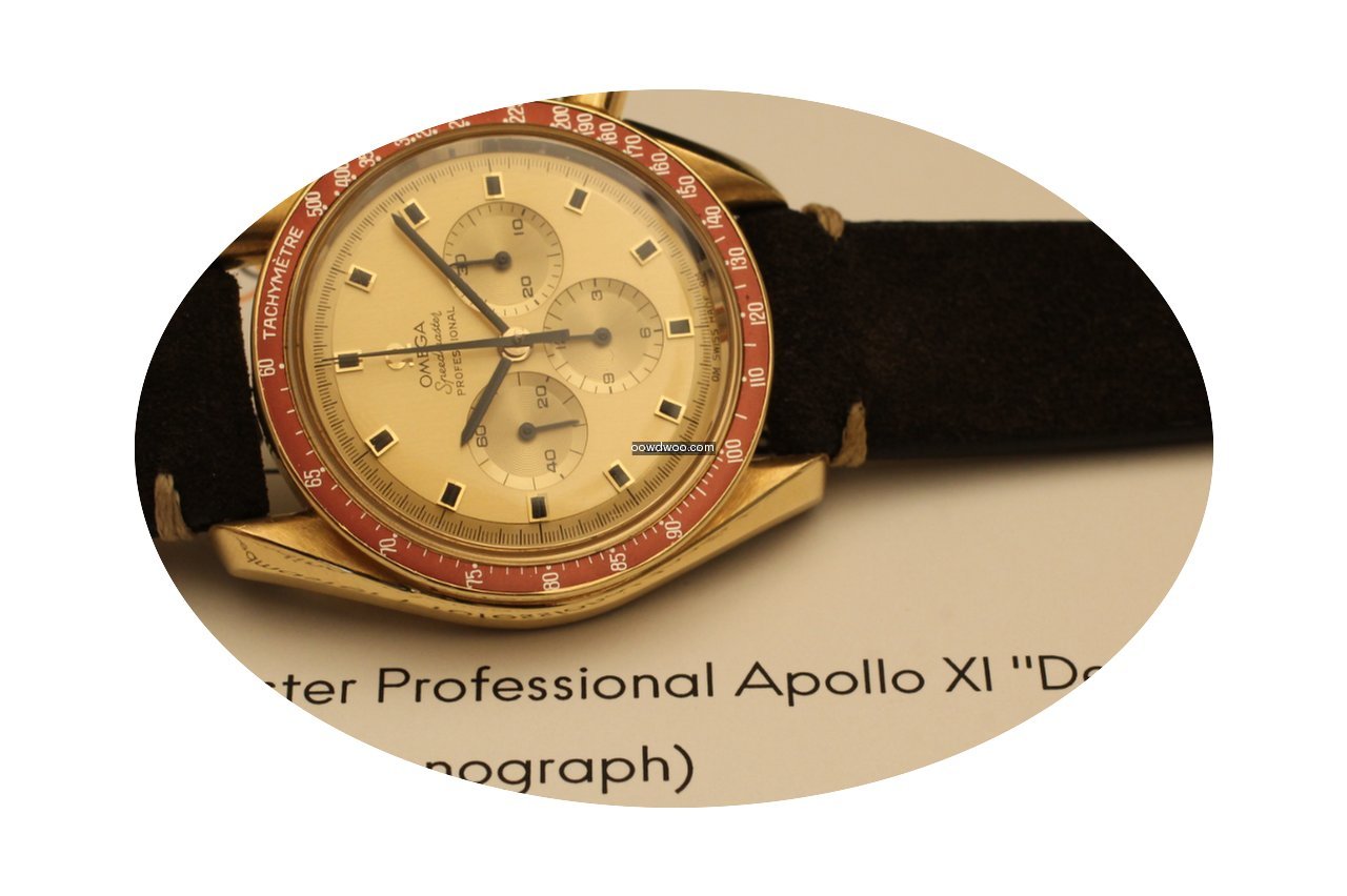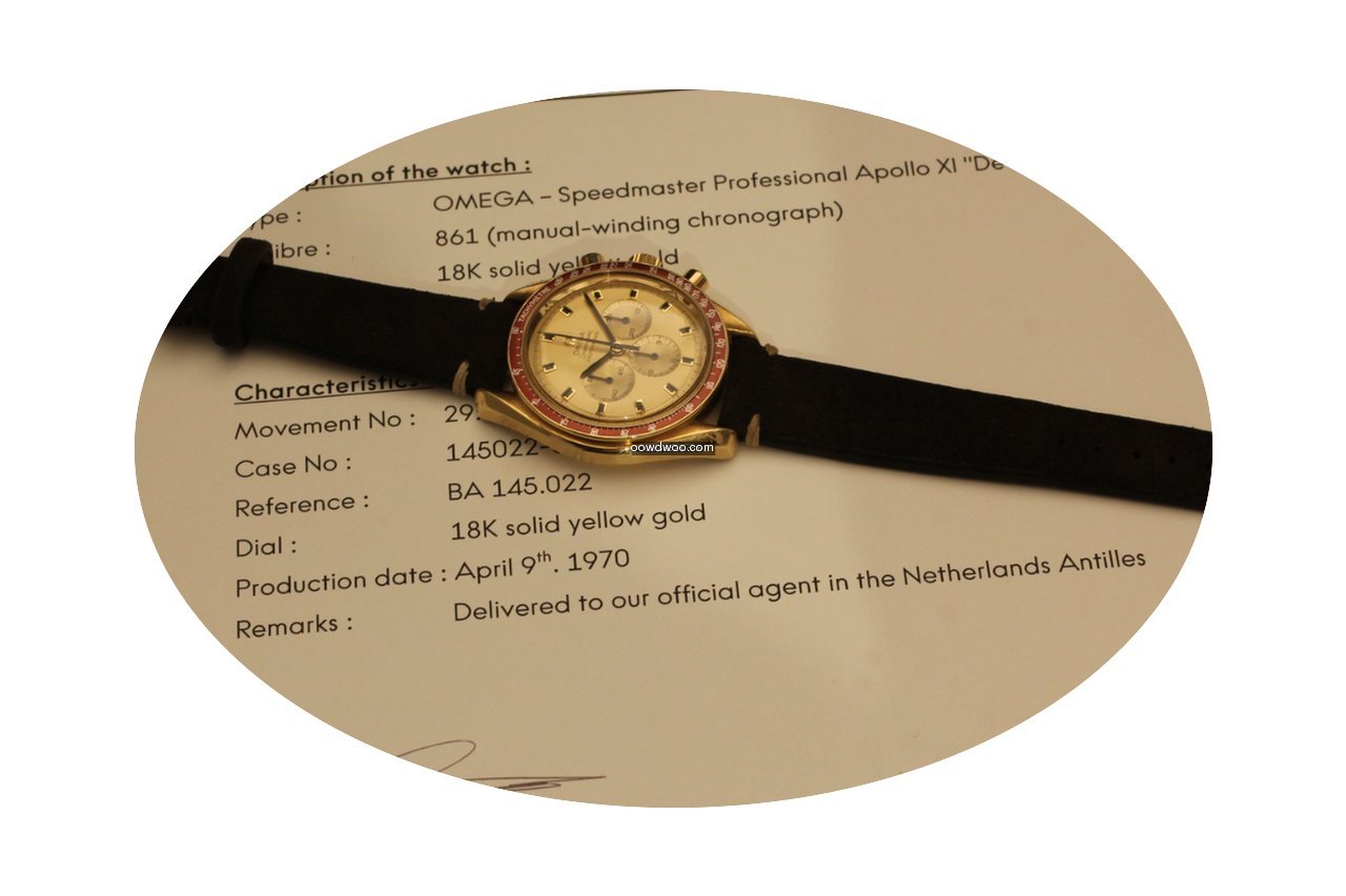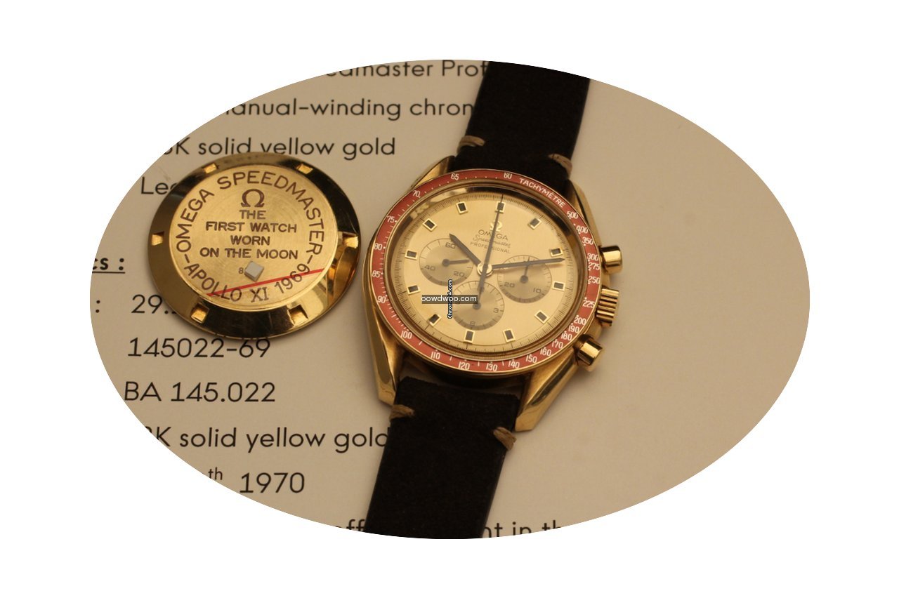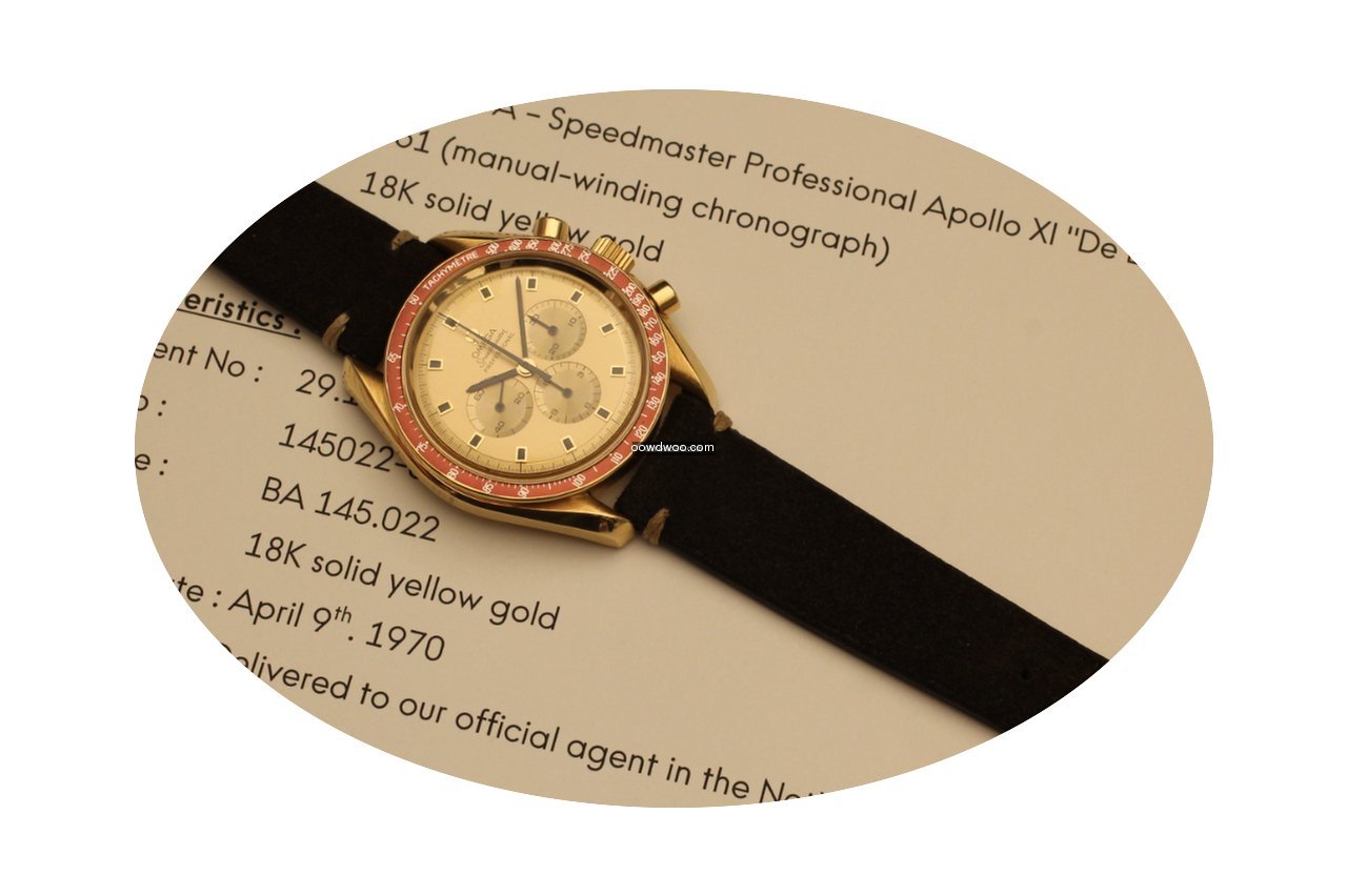 Omega Speedmaster Professional Moonwatch ad: $32,177 Omega speedmaster professional apollo xi de luxe yellow gold 1969 Ref. No. BA 145022; Yellow gold; Manual winding; Condition 1 (mint); Year 1969; With papers; Lo