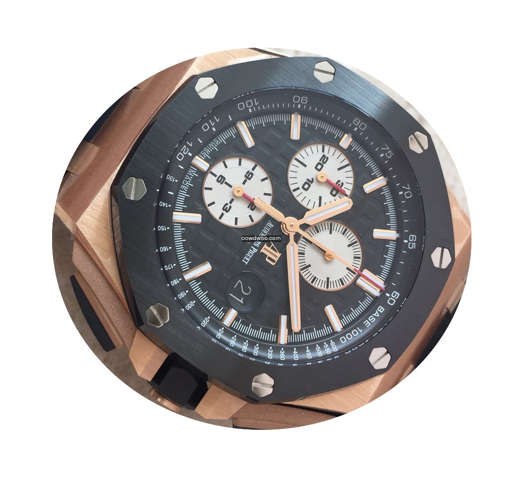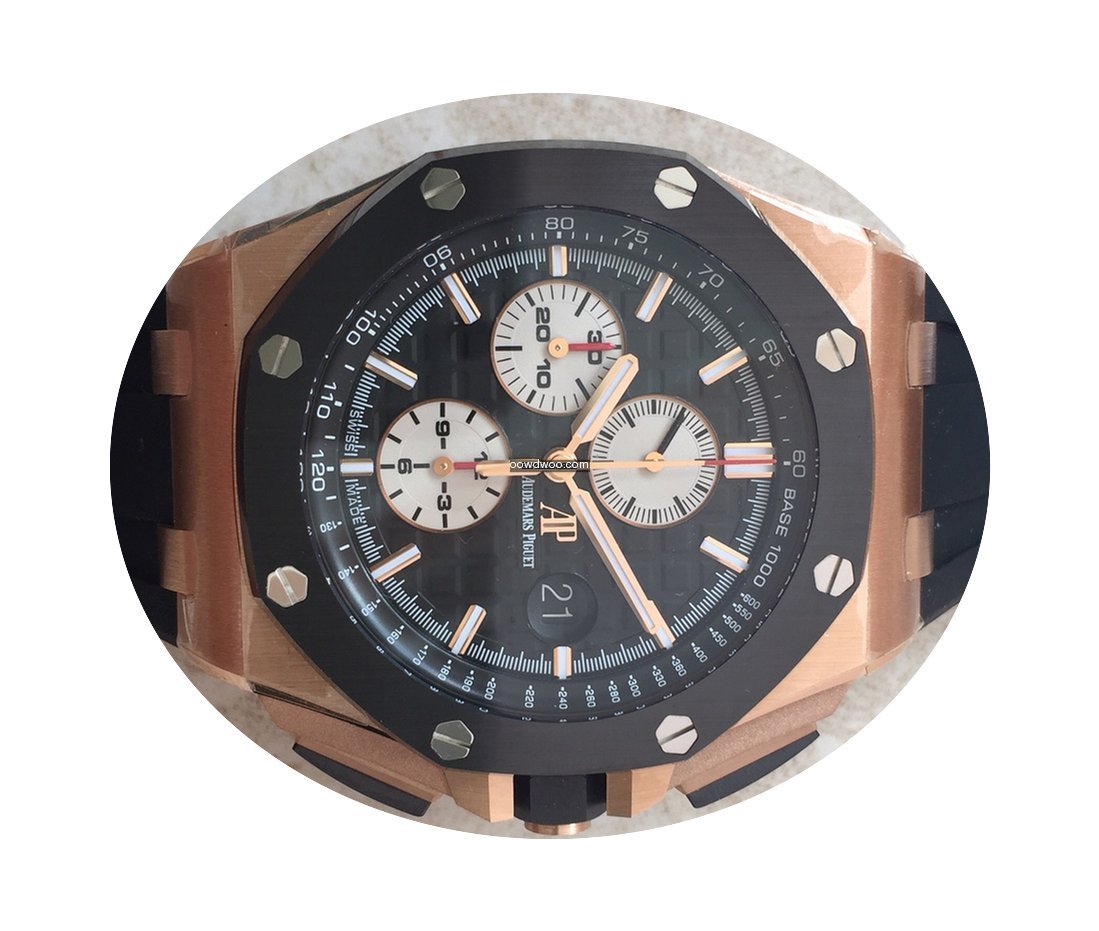 Audemars Piguet Royal Oak Offshore Chronograph ad: $40,900 Audemars Piguet Royal Oak Offshore Chronograph 26401RO.OO.A002... Ref. No. 26401RO.OO.A002CA.01; Pink gold; Automatic; Condition 0 (unworn); New; With box; With