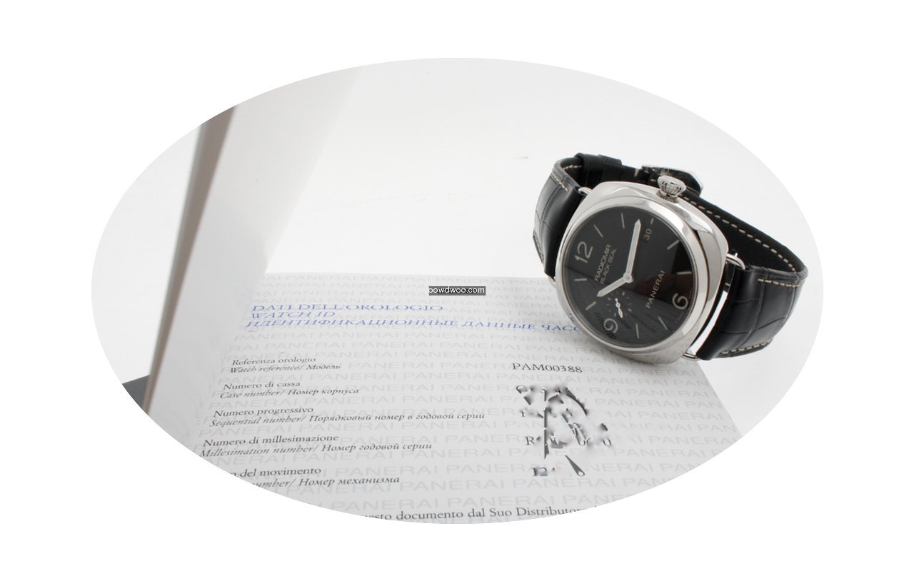 Panerai Radiomir Black Seal 3 Days Automatic ad: $5,468 Panerai Radiomir Black Seal 3 days automatic - full set 2017... Ref. No. PAM00388 PAM388; Steel; Automatic; Condition 1 (mint); Year 2017; With box; With paper