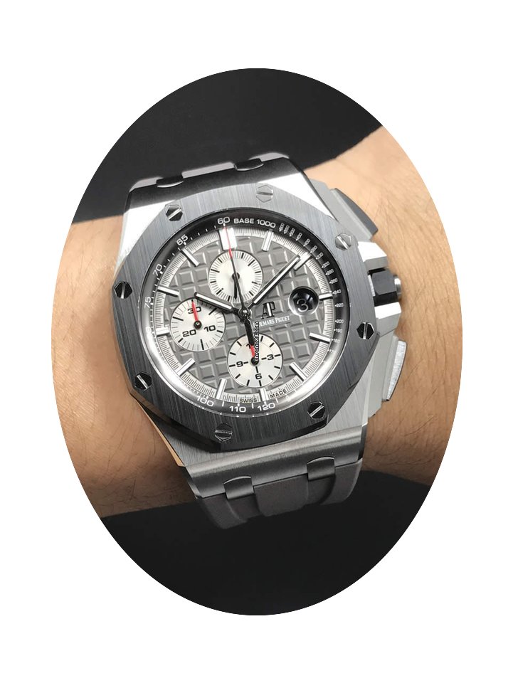 Audemars Piguet Royal Oak Offshore Chronograph ad: $27,063 Audemars Piguet Royal Oak Offshore Chronograph Grey Ceramic... Ref. No. 26400IO.OO.A004CA.01; Titanium; Automatic; Condition 0 (unworn); New; With box; Locati