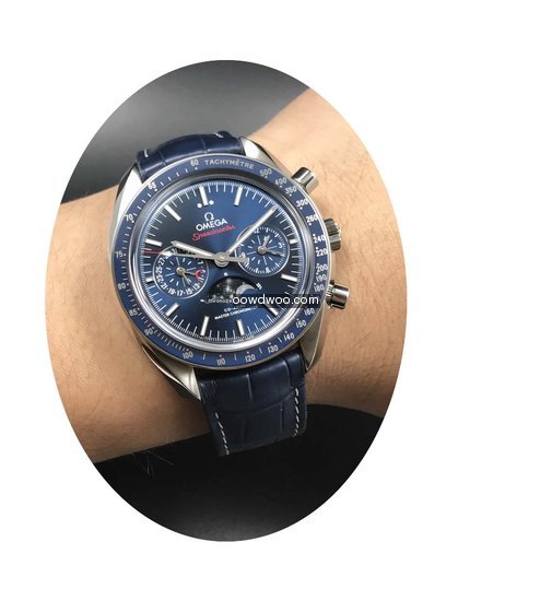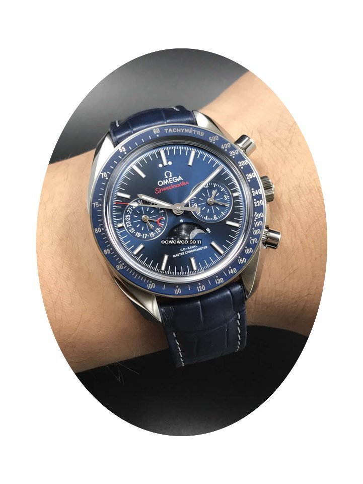 Omega Speedmaster Professional Moonwatch Moonphase ad: $7,546 Omega SPEEDMASTER CO-AXIAL CHRONOGRAPH MOONPHASE 44.25mm BLUE NEW Ref. No. 304.33.44.52.03.001; Steel; Automatic; Condition 0 (unworn); New; With box; With paper