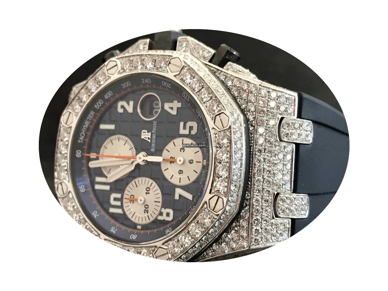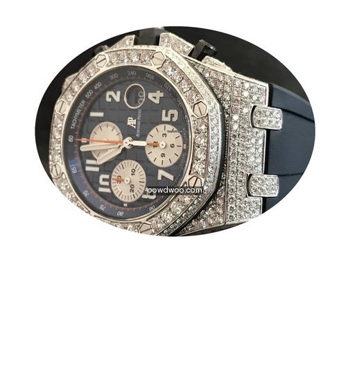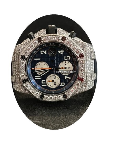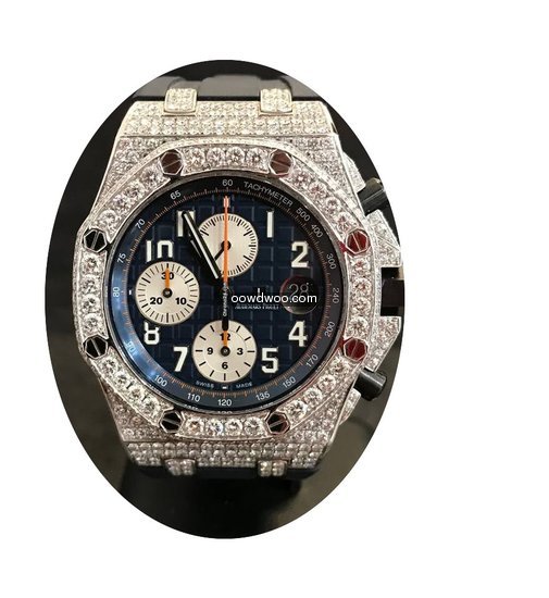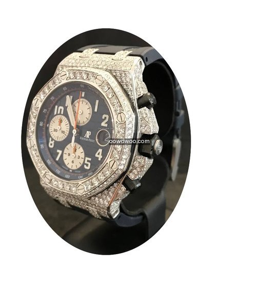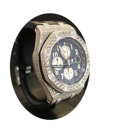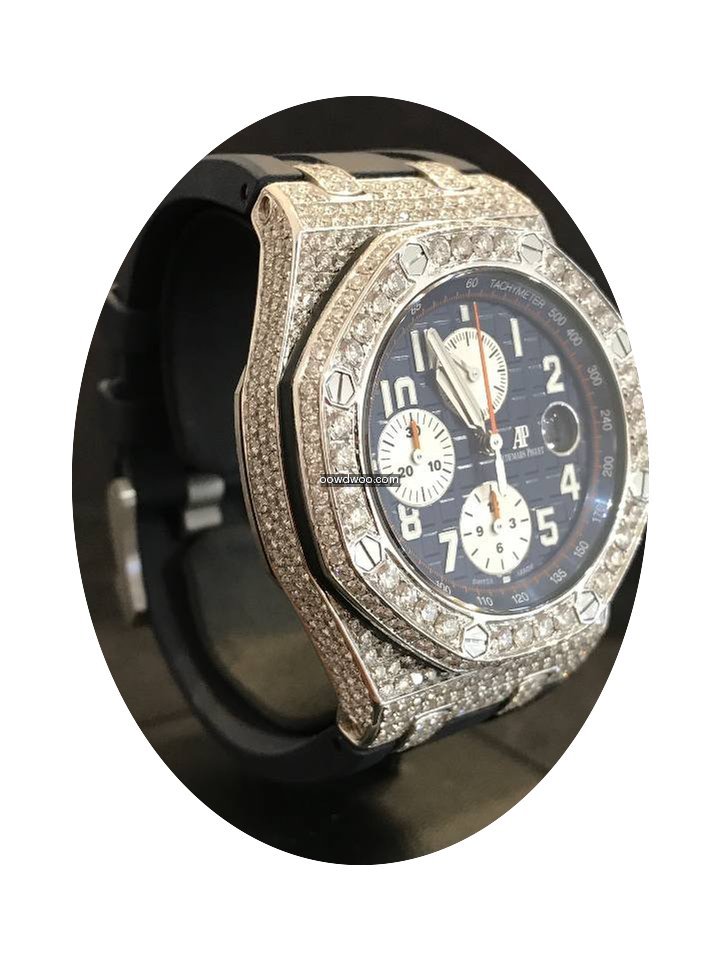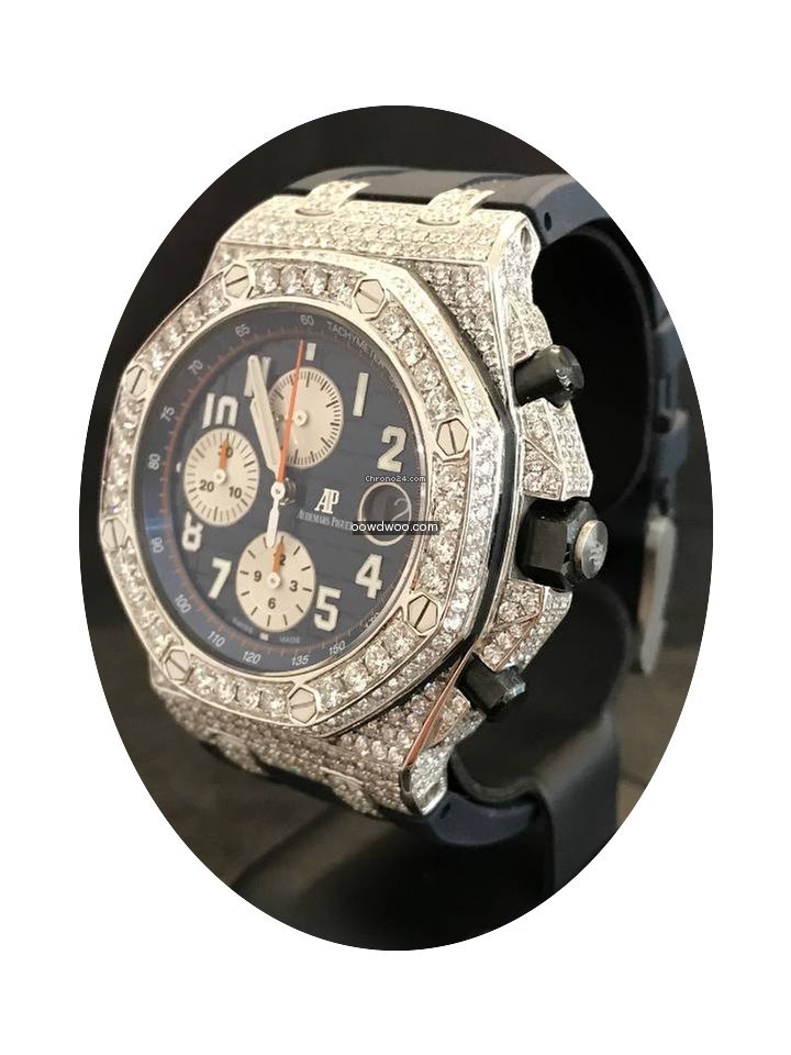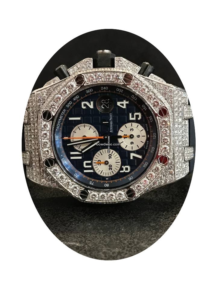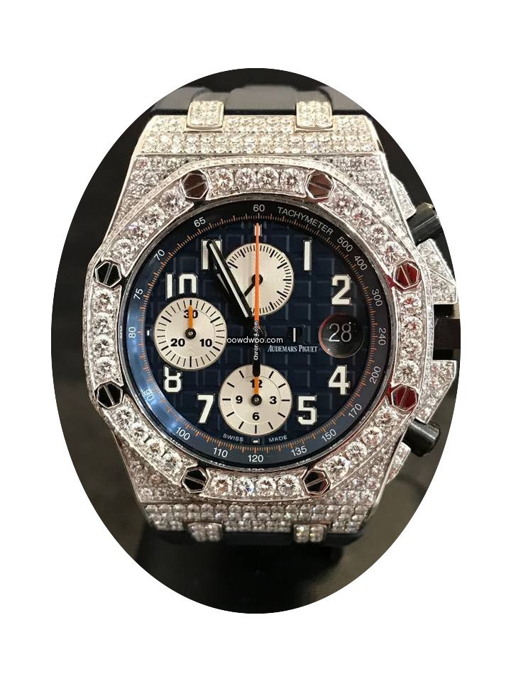 Audemars Piguet Royal Oak Offshore Chronograph ad: $27,302 Audemars Piguet Offshore Chronograph Navy - Custom Diamond Pave Ref. No. 26470ST.OO.A027CA.01; Steel; Automatic; Condition 1 (mint); Year 2015; With box; With