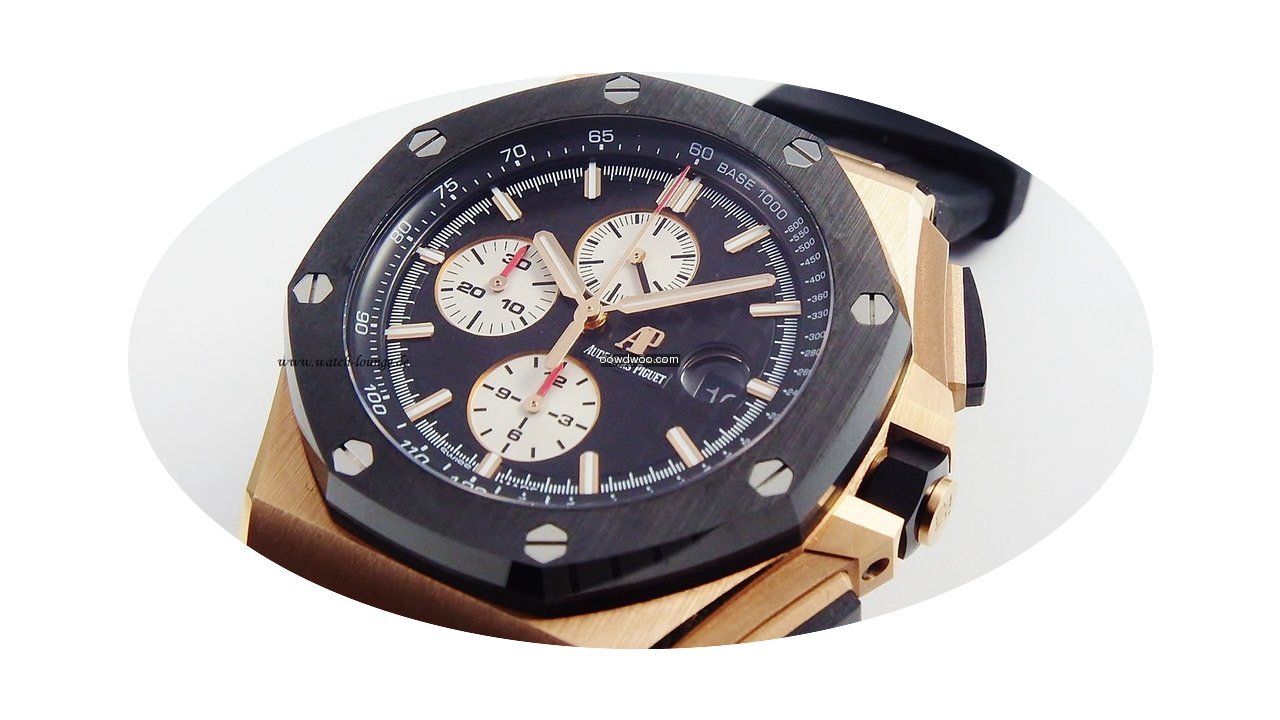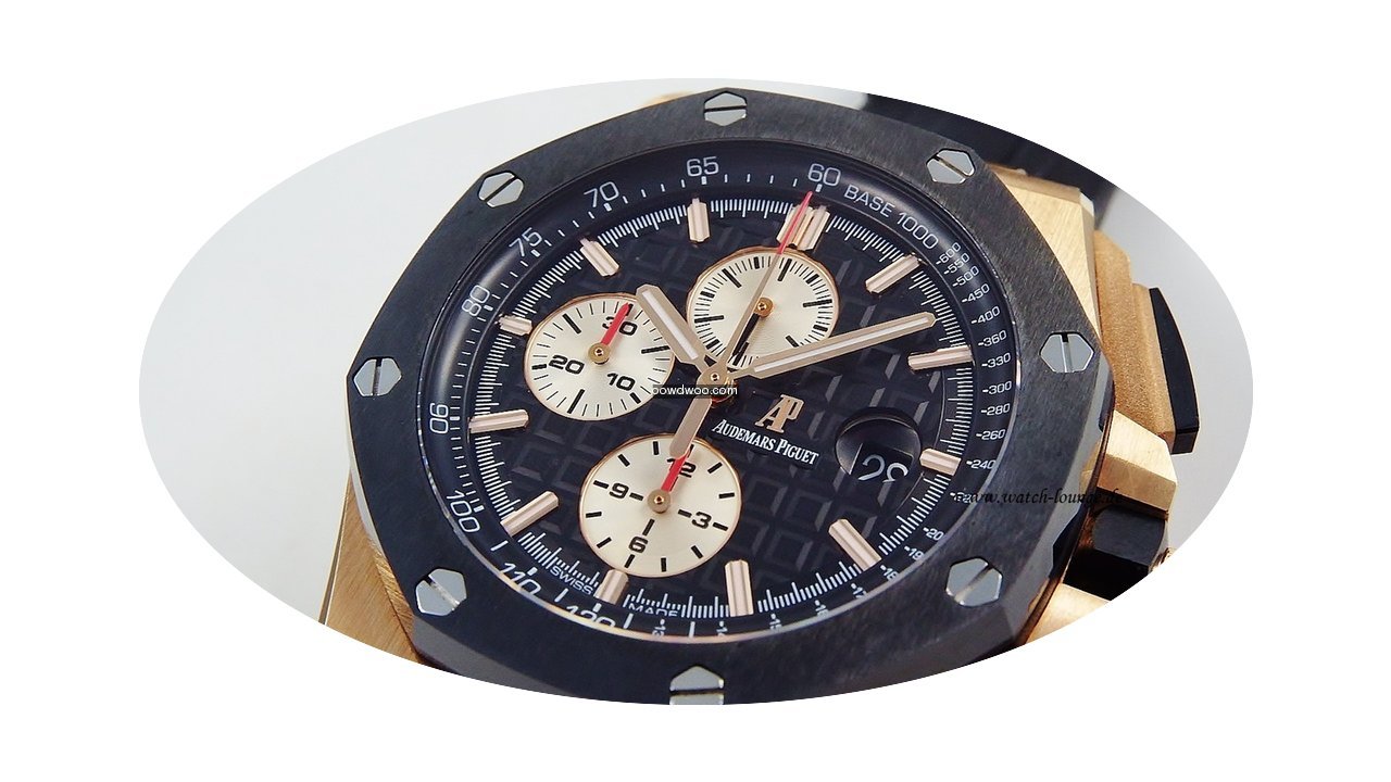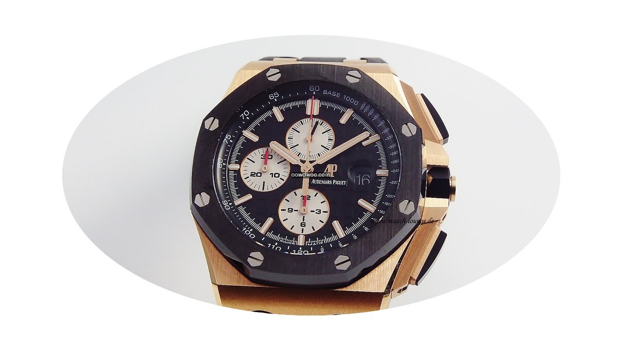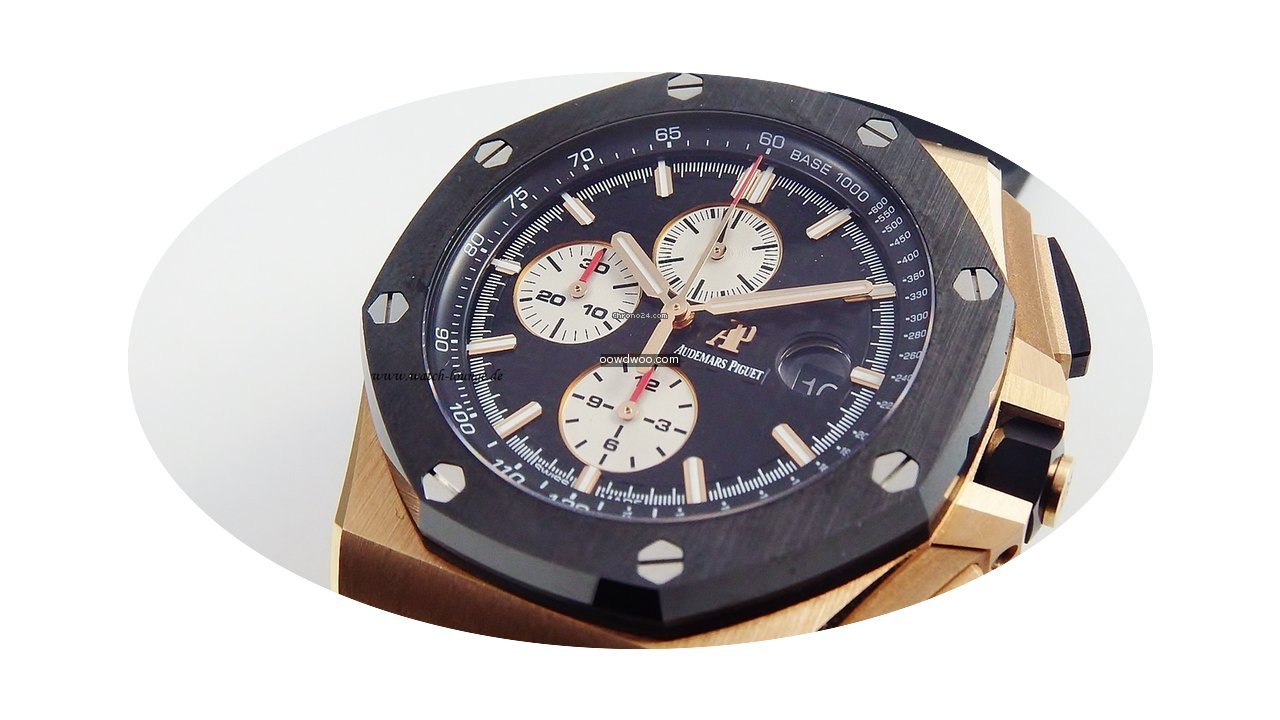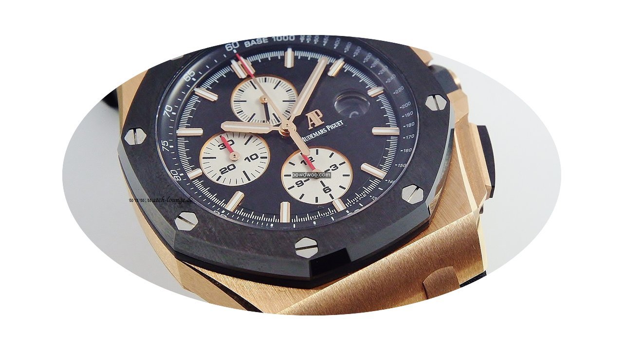 Audemars Piguet Royal Oak Offshore Chronograph ad: $43,704 Audemars Piguet Royal Oak Offshore Chrono 26401 Rose gold... Ref. No. 26401RO.00.A002CA.01; Pink gold; Automatic; Condition 1 (mint); Year 02/2017; With box